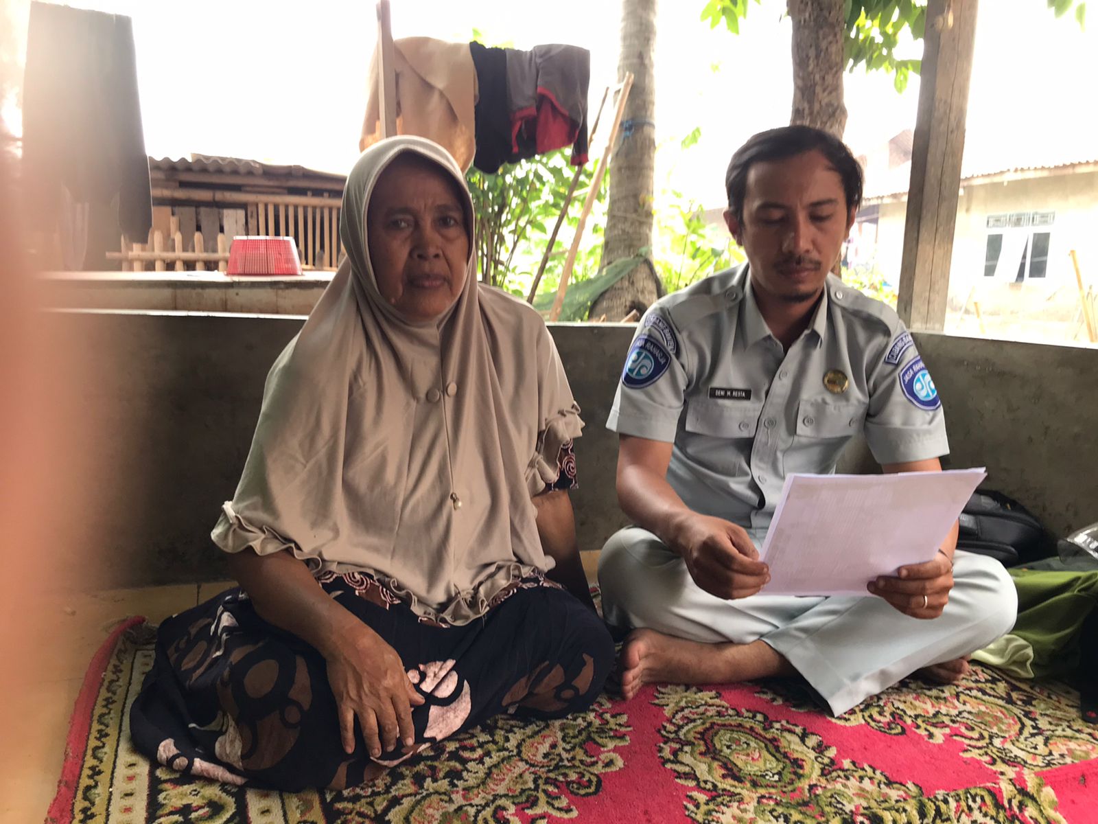 Petugas mobile service KPJR Tigaraksa, Deni M Resta melakukan survey ahli waris di kediaman korban yang beralamat di Link Cikupa RT 02/03 Ds. Cikupa Kec. Cikupa Kab. Kedatangan Deni diterima oleh Supiyanti selaku istri korban dan ahli waris yang sah, dan dalam waktu yang cukup singkat semua berkas persyaratan kelengkapan terkait penyerahan santunan dapat diperoleh.