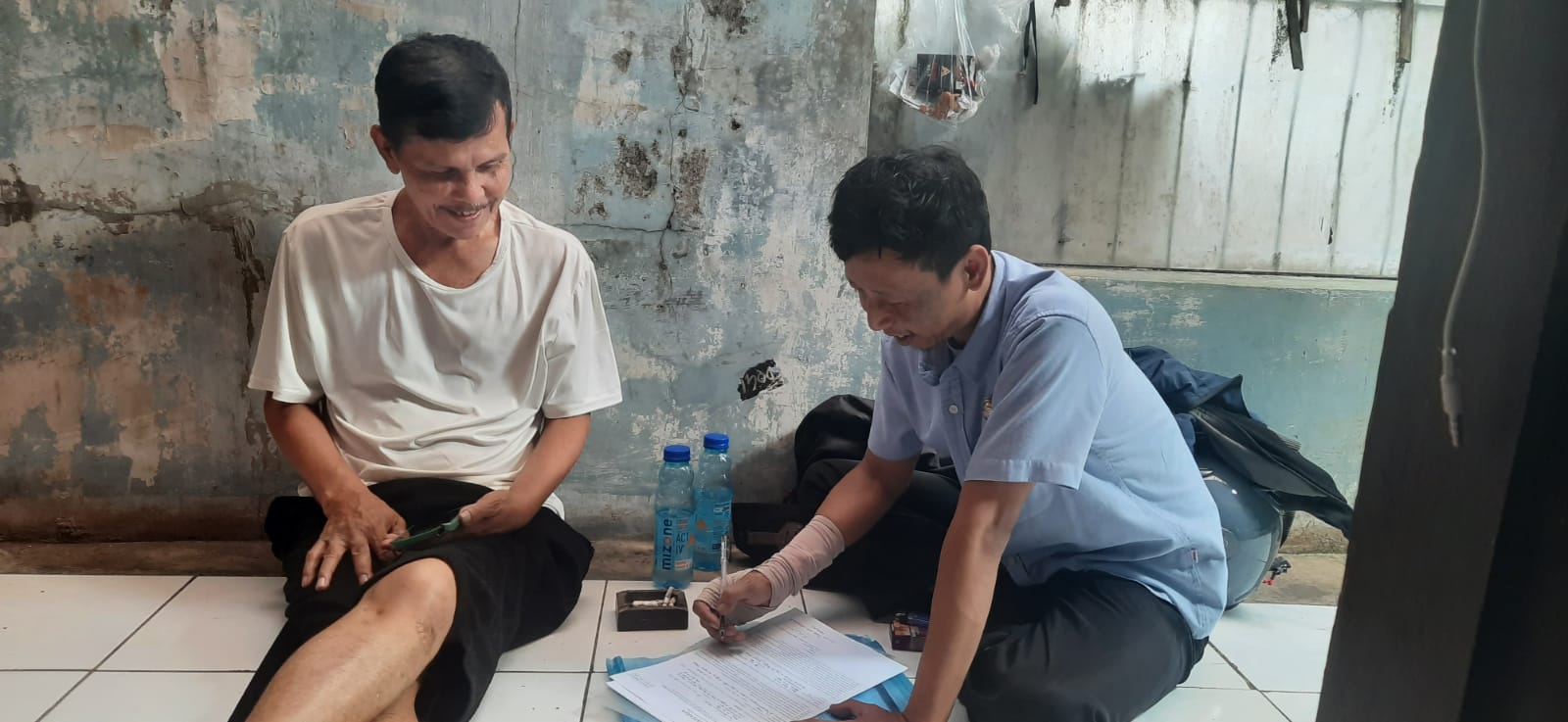 Senin siang 04 September 2023 petugas Jasa Raharja Devianto Aji Pelaksana Administrasi SAMSAT Batuceper mendatangi kediaman korban di wilayah Batuceper Kota Tangerang.