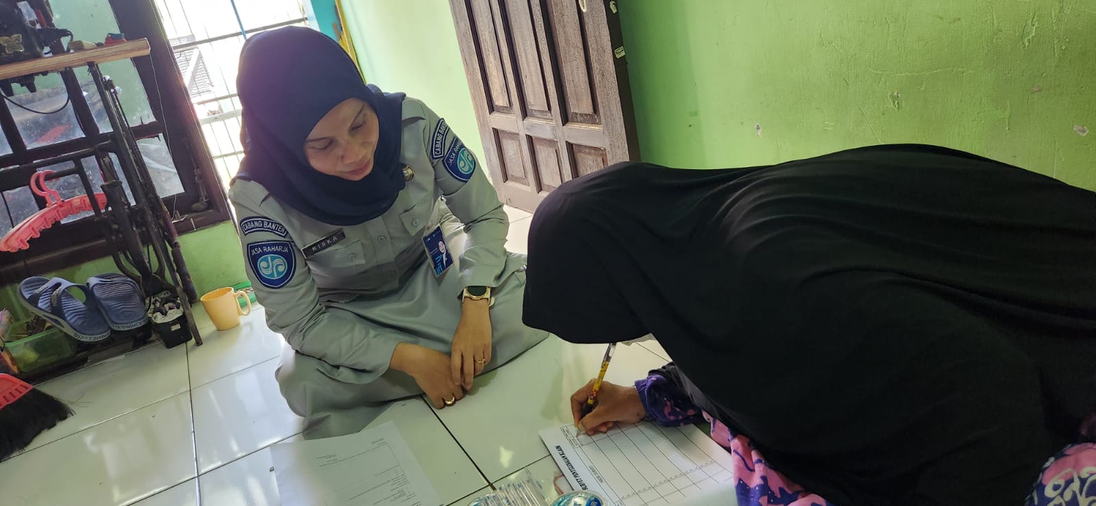 Tangerang, (ProBanten) – Mendapatkan info kecelakaan dari petugas Jasa Raharja perwakilan Bogor petugas Gerai Samsat Pasar kemis Riska Amelia melakukan survey ahli waris yang berada di kediaman korban, beralamat di Perum Pondok Indah Kutabumi Kab. Tangerang – Banten, terjadi kecelakaan pada tanggal 7 Agustu 2023, kendaraan R2 nopol A 5156 VFX bertabrakan dengan truck B 9322 SEH, kejadian ini terjadi di Jl Raya Umum Transyogi Tepatnya Di Dekat Showroom Mitsubishi Kp Pasar Lama RT 02/08 Ds/Kec. Cileungsi Kab. Bogor, RT 02, RW 08, dimana kendaraan R4 truck menabrak kendaraan SPM R2 yang terjatuh.
