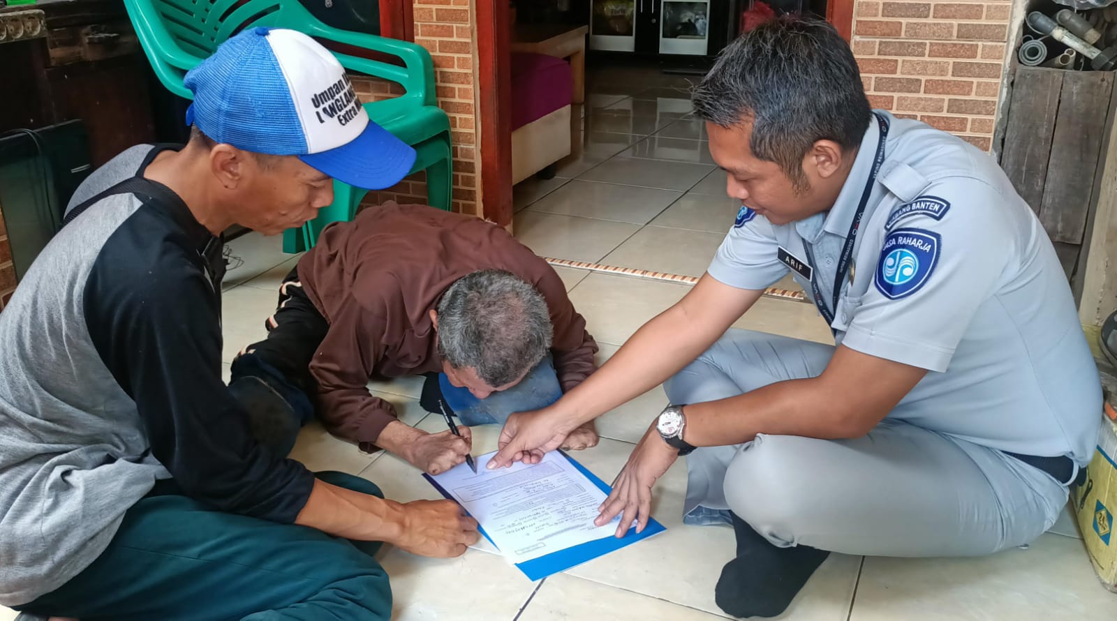 Raut muka sedih dan kehilangan Supandi masih terlihat ketika petugas Jasa Raharja Perwakilan Tangerang Cabang Banten Ahmad Arif Budiman menemui di kediamannya pada Senin (18/09/2023). Pada kesempatan tersebut Arif menyampaikan ungkapan belasungkawa atas musibah yang menimpa puteranya.