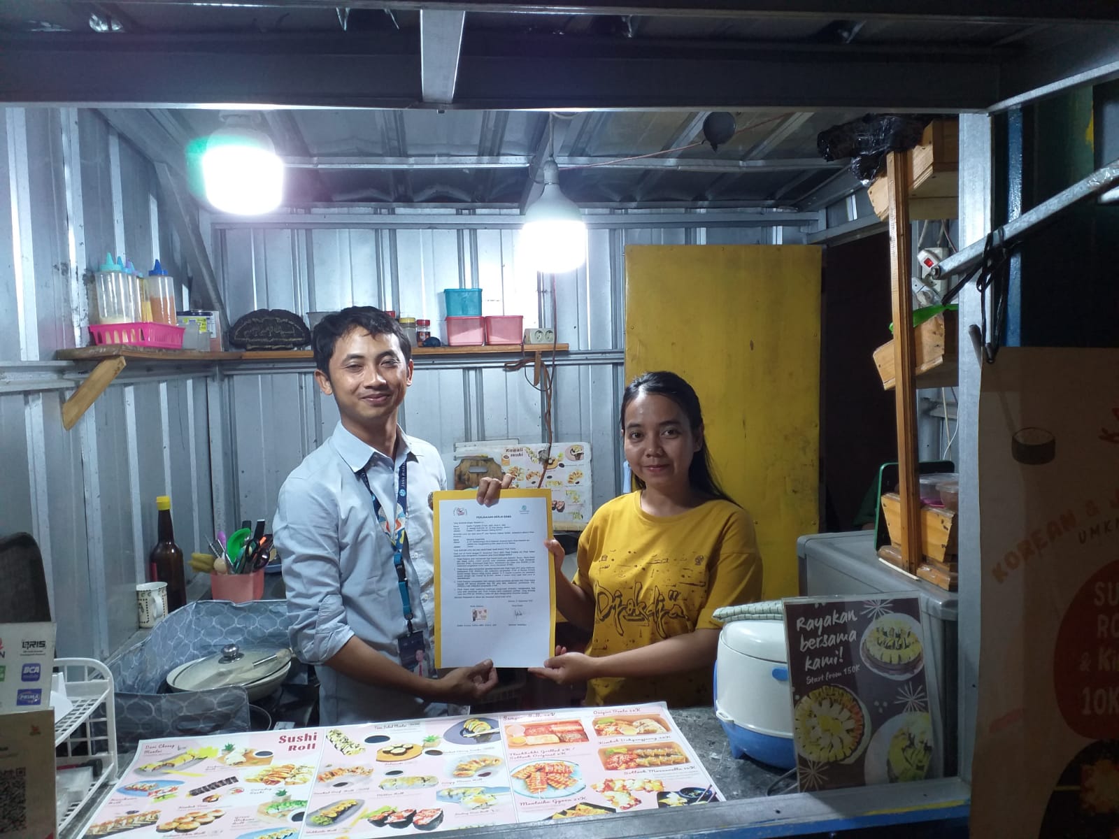 Cilegon, (ProBanten) – Petugas Jasa Raharja Wilayah Kota Cilegon, Mochamad Aulia Robby lakukan penandatanganan Perjanjian Kerja Sama (PKS) antara PT Jasa Raharja Cabang Banten dengan Kawaii Sushi bertempat di lokasi Jl. RT Hardiwinangun No.2 (halaman samping kantor dinas koperasi dan UMKM) Kec. Rangkasbitung Kab. Lebak Prov. Banten.