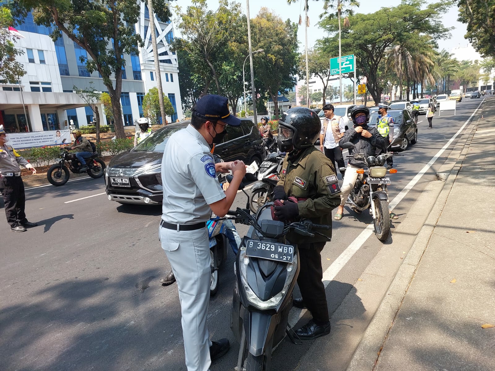 Tangerang, (ProBanten) – Jasa Raharja Perwakilan Tangerang Cabang Banten bersama dengan UPTD PPD Samsat Serpong dan Polresta Tangerang Selatan menggelar penertiban Pajak Kendaraan Bermotor di Jl. Letnan Sutopo, Lengkong Wetan, Kota Tangerang Selatan pada Rabu (27/09/2023).