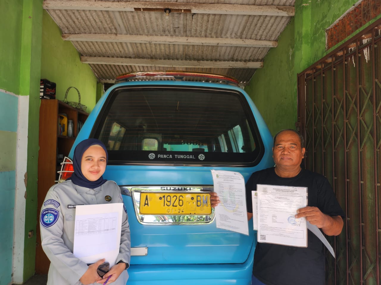 Serang, (ProBanten) – Sebagai bentuk dari Pelaksanaan Undang-Undang Nomor 33 Tahun 1964 tentang Dana Pertanggungan Wajib Kecelakaan Penumpang, Petugas Jasa Raharja Samsat Induk dan Samsat Gerai Kota Serang melakukan Kegiatan Intensifikasi Penagihan untuk IWKBU (Iuran Wajib Kendaraan Bermotor Umum) di Wilayah Kota Serang.