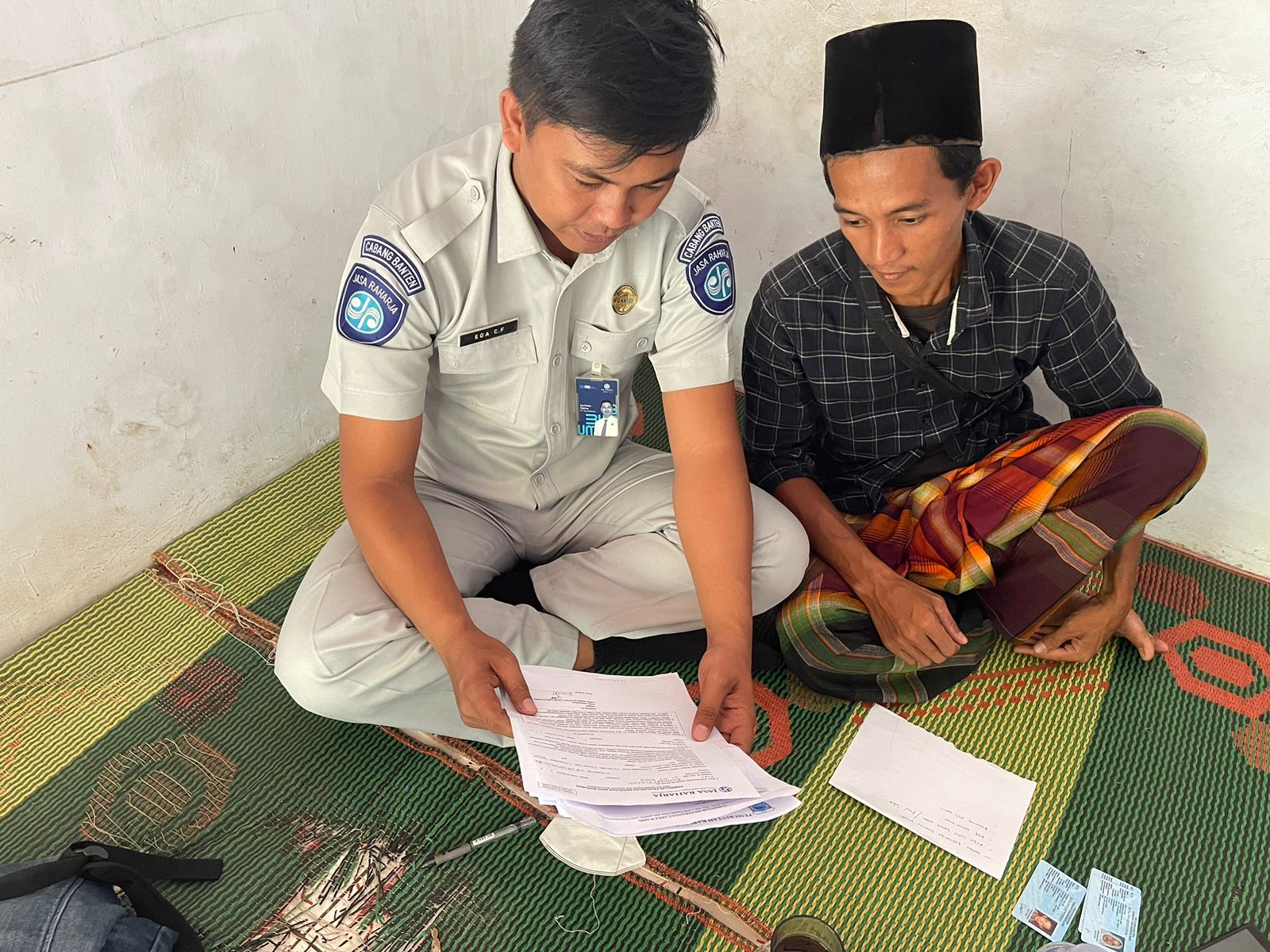 Pandeglang, (Banten) – Mendapatkan info kecelakaan dari petugas Laka Lantas Polres Pandeglang. Petugas Samsat Pandeglang Ega Cahya Pebrian melakukan survey ahli waris yang berada di kediaman korban, beralamat di Kp.Kadumaneuh Ds.Kadumaneuh Kec.Banjar Kab. Pandeglang – Banten, Rabu (27/12/2023).