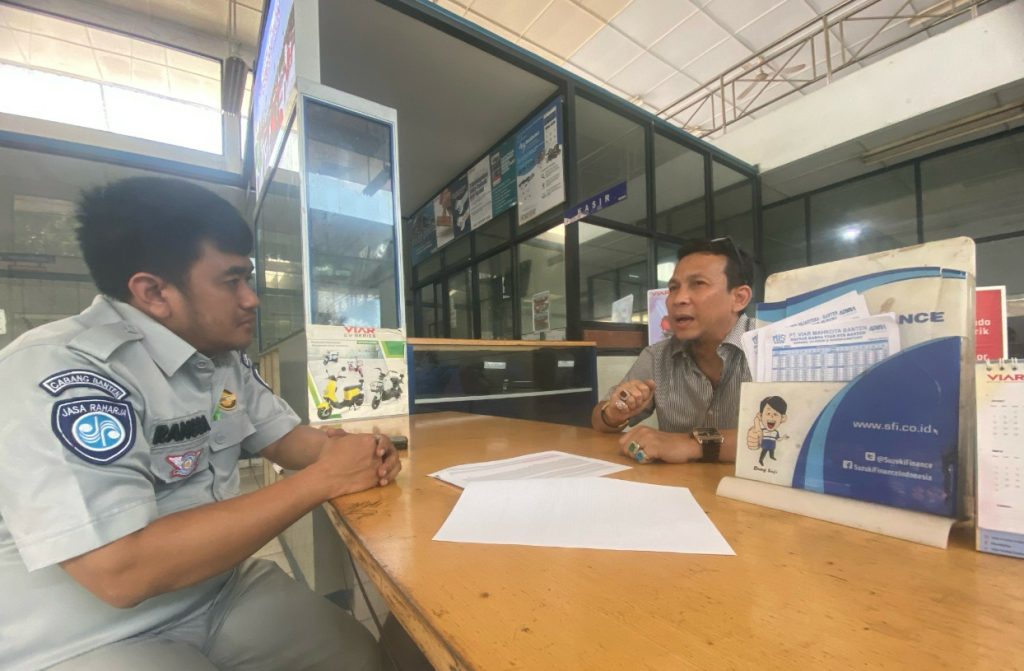 Serang, (ProBanten) – Petugas Jasa Raharja Cabang Banten, Samsat Kota Serang Rangga Figur Rachman melakukan kunjungan ke Perusahaan PT. Mahkota Inti Sejahtera Kota Serang, Selasa (13/2/2024).