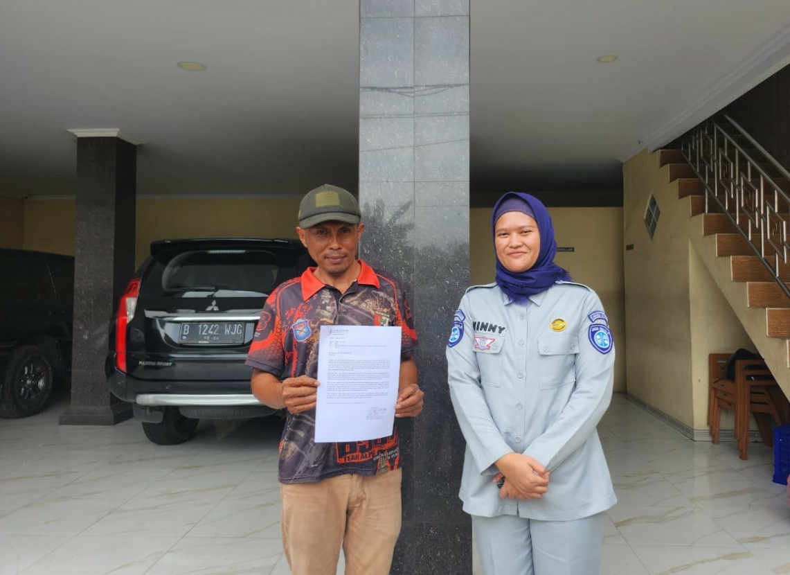 Serang, (ProBanten) – Petugas Jasa Raharja Cabang Banten, Samsat Kota Serang Vinny Nurina melakukan giat pendekatan dengan silaturahmi serta sosialisasi di Perusahaan PT. Aam Prima Artha yang merupakan Perusahaan dalam bidang makanan dan Sembako wilayah kota Serang, Senin (19/2/2024)