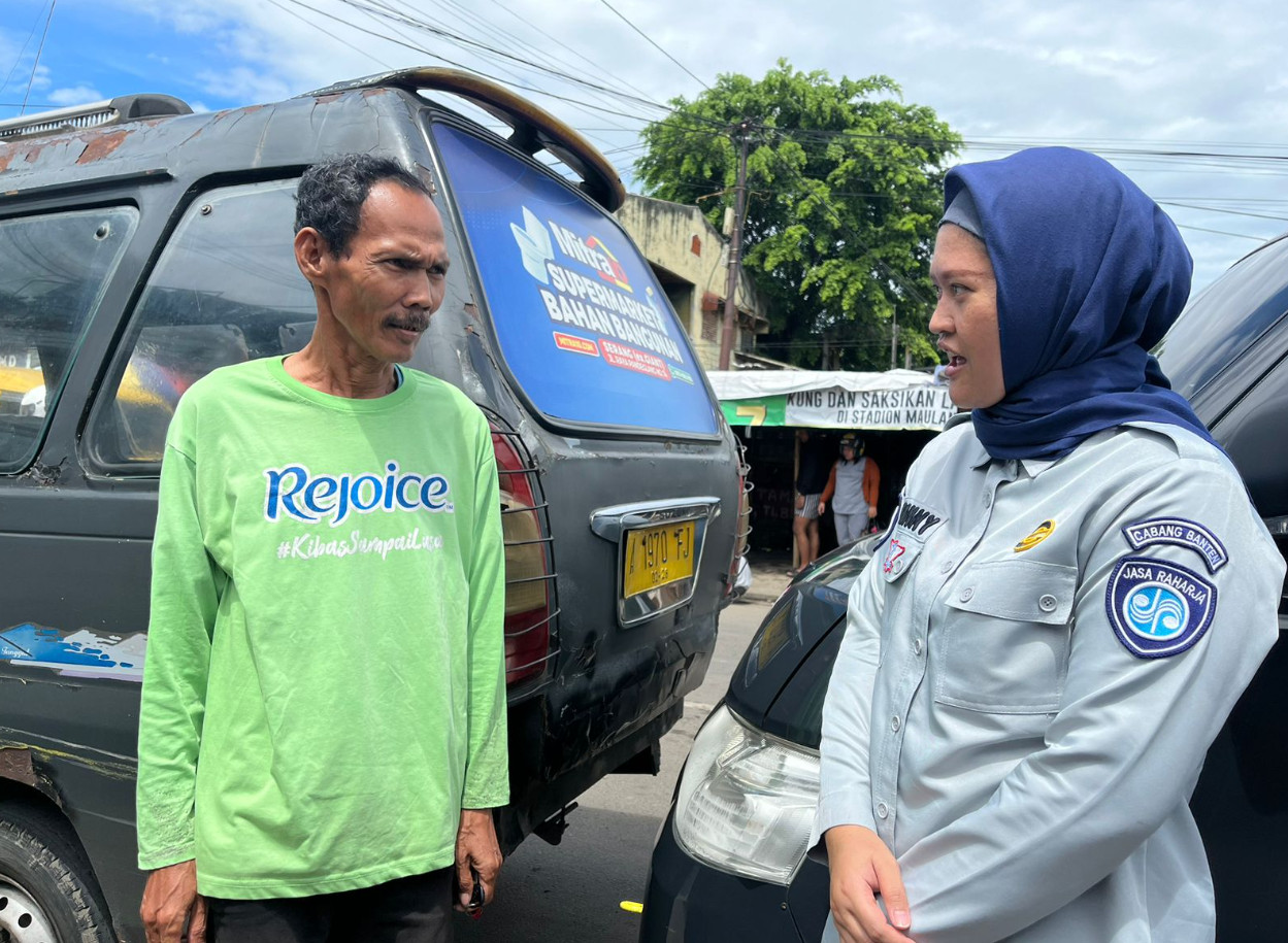 Serang, (ProBanten) – Petugas Jasa Raharja Cabang Banten Vinny Nurina Staf dari Samsat Kota Serang, mengunjungi salah satu pemilik Angkutan Umum wilayah kota Serang sebagai suatu bentuk langkah proaktif dalam memberikan perlindungan kepada penumpang angkutan umum.