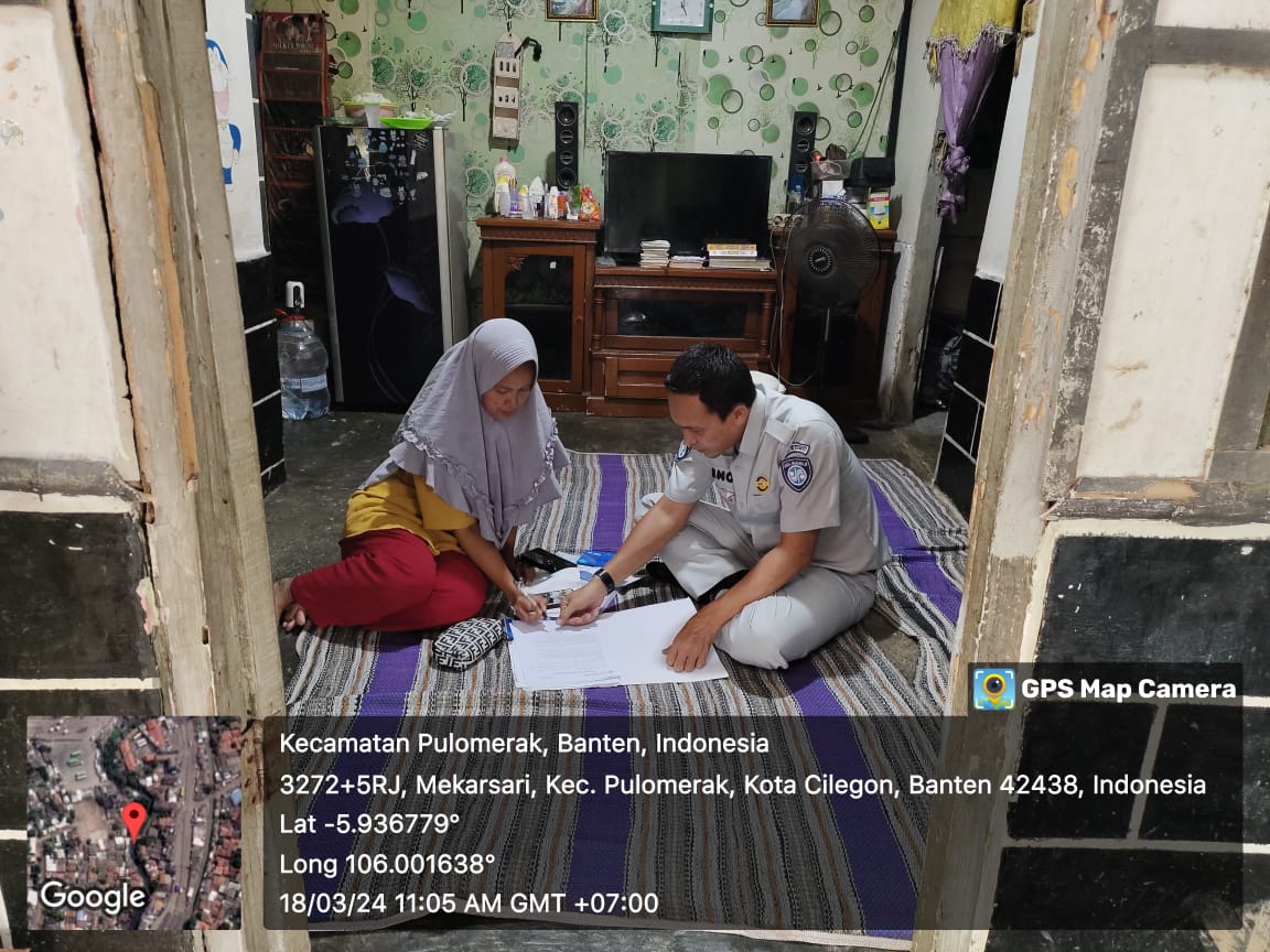 Cilegon, (ProBanten) – Mendapatkan info dari media social yang viral dan berkoordinasi dengan laka lantas Cilegon. Petugas samsat Cilegon Retno Saputra melakukan survey ahli waris yang berada di Merak, beralamat di Link Medaksa Sabrang Kel. Tamansarai Kec.Pulomerak Cilegon – Banten, Laka Lantas terjadi pada tanggal 17/03/2024 dimana seorang anak kecil tertabrak bus di terminal Pelabuhan executive Merak Cilegon.