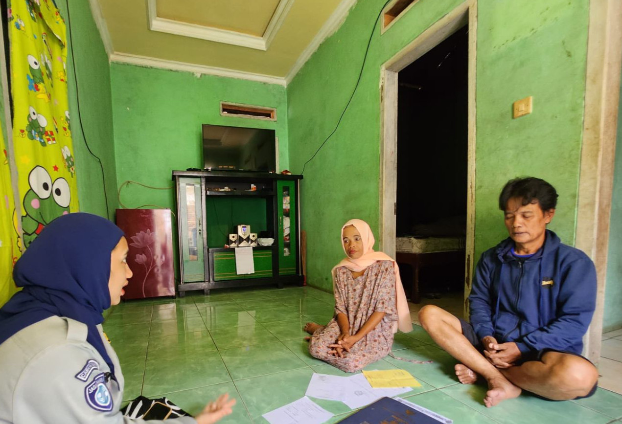 Risa Puspita dari Jasa Raharja Cabang Banten melakukan survey ahli waris, Selasa, 19 Maret 2024. Layanan jemput bola ini dimaksudkan untuk mempercepat proses penyelesaian santunan.
