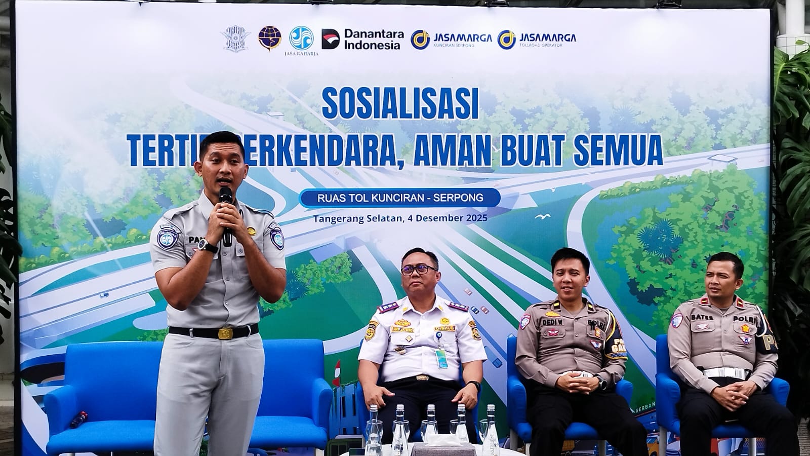 Hadir dalam kegiatan ini Ipda Desi Susanti selaku Kanit Kamsel Satlantas Polres Metro Tangerang Kota, didampingi Ipda Heri Budi Prasetyo dan Aiptu Gono, serta perwakilan dari Dinas Perhubungan Kota Tangerang yaitu Bapak Muh. Yusuf dan Pak Dindin. Turut hadir pula Mulya Agung Minang Putra selaku Mobile Service dari Jasa Raharja Tangerang.