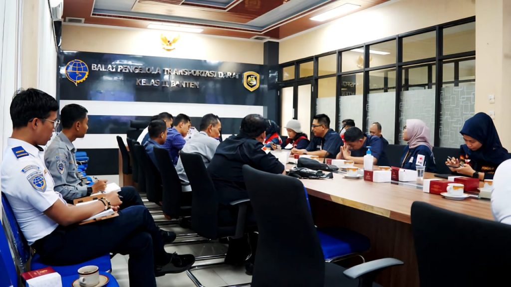 Serang, (ProBanten) – Bertempat di Ruang Rapat BPTD Kelas II Banten pada tanggal 1 September 2025 telah dilaksanakan Rapat Forum Komunikasi Lalu Lintas yang dihadiri oleh PT Jasa Raharja Kantor Wilayah Banten, Dinas Perhubungan, PMI Provinsi Banten dan Dinas Kesehatan.