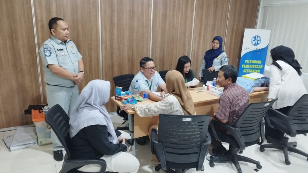 Dalam pelaksanaannya, Jasa Raharja Cabang Tangerang bekerja sama dengan tenaga medis dari rumah sakit untuk memberikan layanan pemeriksaan kesehatan.