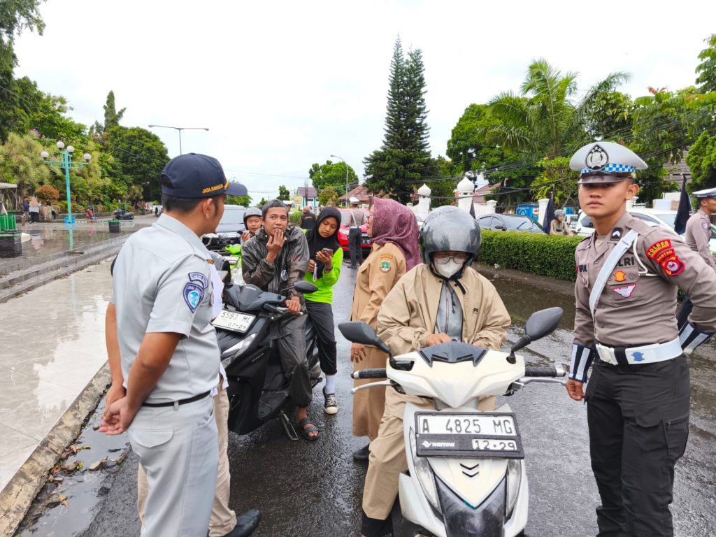 Petugas Jasa Raharja Samsat Pandeglang Fawaz Amin turut serta dalam giat penertiban tersebut di wilayah Alun Alun Kabupanten Pandeglang pada Hari Selasa 11 November 2025.