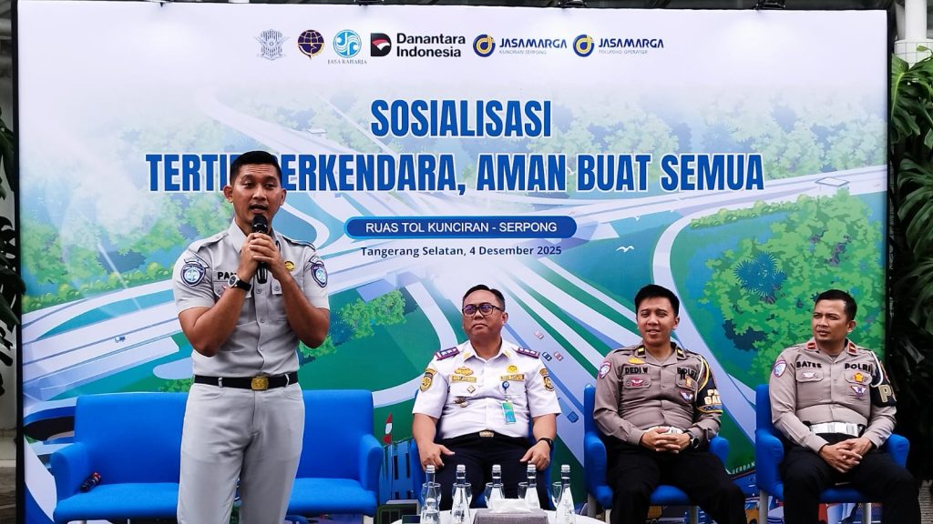 Tangerang, (ProBanten) – Dalam rangka mendukung peningkatan kesadaran berlalu lintas khususnya pengguna jalan tol, PT Jasa Raharja Cabang Tangerang bekerja sama dengan PT Jasamarga Tollroad Operator Ruas Kunciran – Serpong menggelar kegiatan Edukasi dan Sosialisasi Tertib Berkendara di Jalan pada hari Kamis tanggal 4 Desember 2025.
