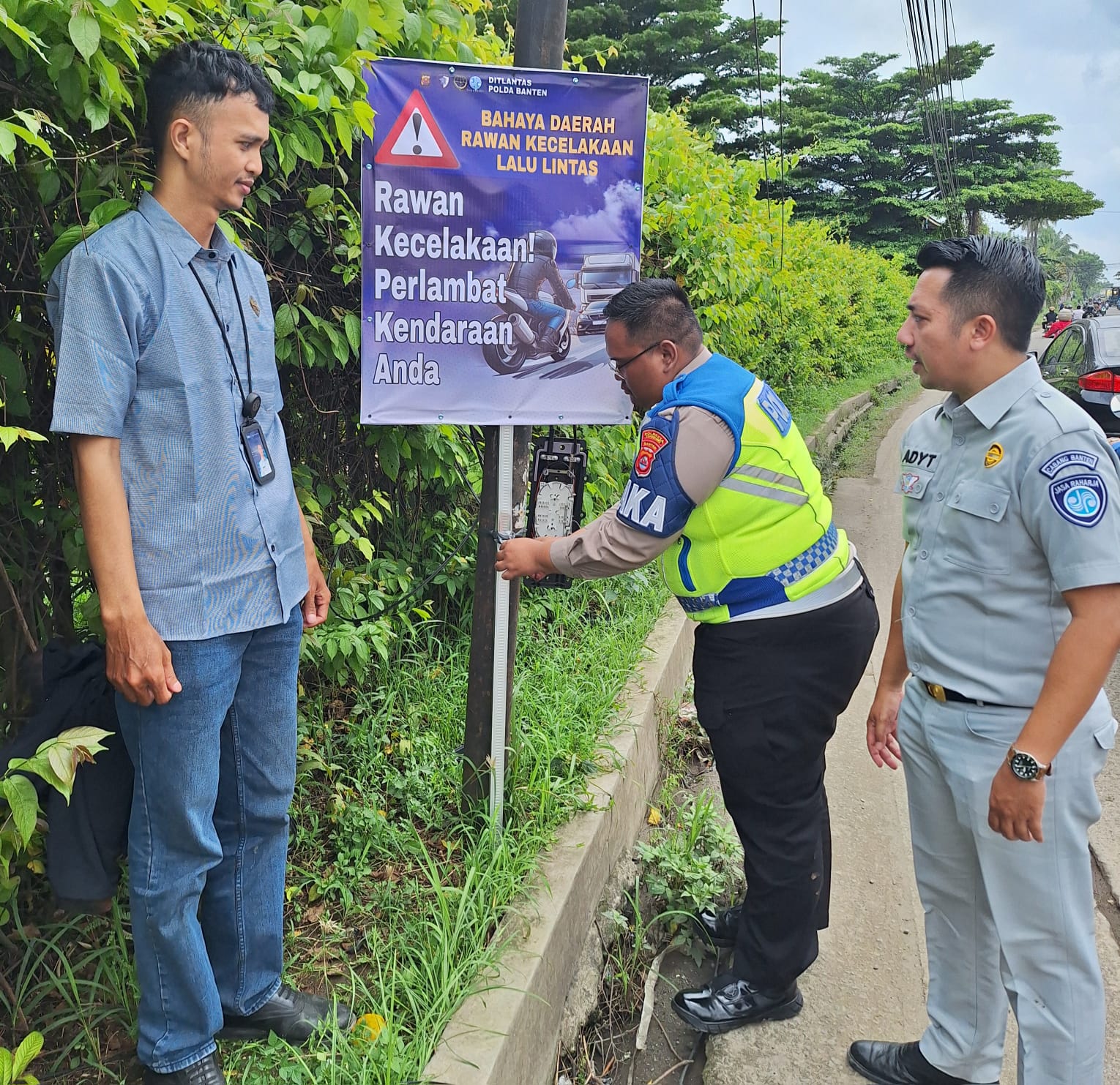 Kepala Cabang Jasa Raharja Tangerang Panji Artha menyampaikan bahwa langkah preventif seperti pemasangan spanduk keselamatan ini diharapkan mampu mengingatkan pengguna jalan secara langsung saat berkendara.
